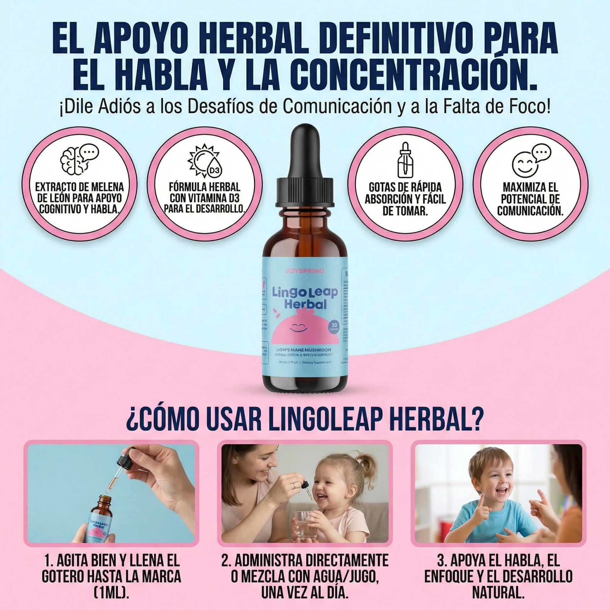 Cada frasco contiene 30 ml, equivalente a30 dosis(1 mes de uso con la dosis diaria recomendada).